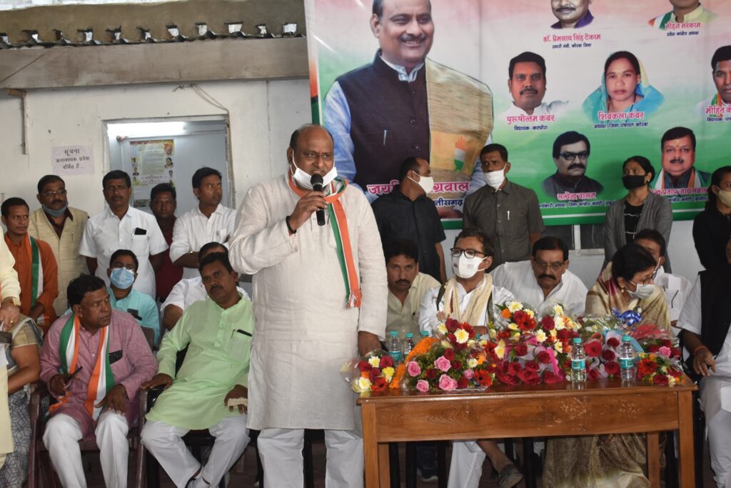 नमस्ते कोरबा :-: खचाखच भरे पार्टी कार्यालय में पार्टी पदाधिकारियों एवं कार्यकर्ताओं को सम्बोधित करते हुए अखिल भारतीय कांग्रेस कमेटी के सचिव एवं प्रदेश कांग्रेस संगठन सह प्रभारी सप्तगिरी शंकर उल्का (सांसद लोक सभा) ने अपने सम्बोधन में कहा कि कोरबा की धरती में इंदिरा गांधी अपने जीवनकाल के अंतिम समय में आई थी। यहॉ स्थापित बड़े बड़े कल कारखाने कांग्रेस के समय लगाया गया है। वर्तमान में विभिन्न संस्थानों को भाजपा की सरकार बेचने में लगी है। उन्होने प्रश्न करते हुए कहा कि प्रधानमंत्री बताएंगे ओ कहते हैं 70 साल में कांग्रेस ने कुछ नही किया जो बेच रहे हैं क्या उनके बाप दादा ने बनाया था। आज संविधान खतरे में है। इससे निर्भिकता से कोई लड़ रहा है तो वह राहुल गांधी है। सभी टी.व्ही. चैनलों का खरीददार देश में झुठ फैलाया जा रहा है। कांग्रेसियों ने आजादी पूर्व और आजादी के बाद बलिदान देकर देश को आजाद कराया और देश के प्रगति में महत्वपूर्ण योगदान दिया। हम सभी कांग्रेसजनों को राहुल गांधी को मजबूत करना होगा, तभी देश बचेगा। आज की बैठक को राजस्व मंत्री जयसिंह अग्रवाल, सांसद श्रीमती ज्योत्सना चरणदास महंत, प्रदेश पदाधिकारी जे. पी. श्रीवास्तव, संगठन प्रभारी शाहिद भाई, महापौर राजकिशोर प्रसाद, जिला अध्यक्ष सुरेन्द्र प्रसाद जायसवाल, विधायक पुरूषोत्तम कंवर, मोहित राम केरकेट्टा, ब्लॉक अध्यक्षगण, संतोष राठौर, इं. सनीष कुमार, पुष्पेन्द्र शुक्ला, यशवंत लाल ने सम्बोधित किया। कार्यक्रम का संचालन सभापति श्याम सुंदर सोनी ने किया।