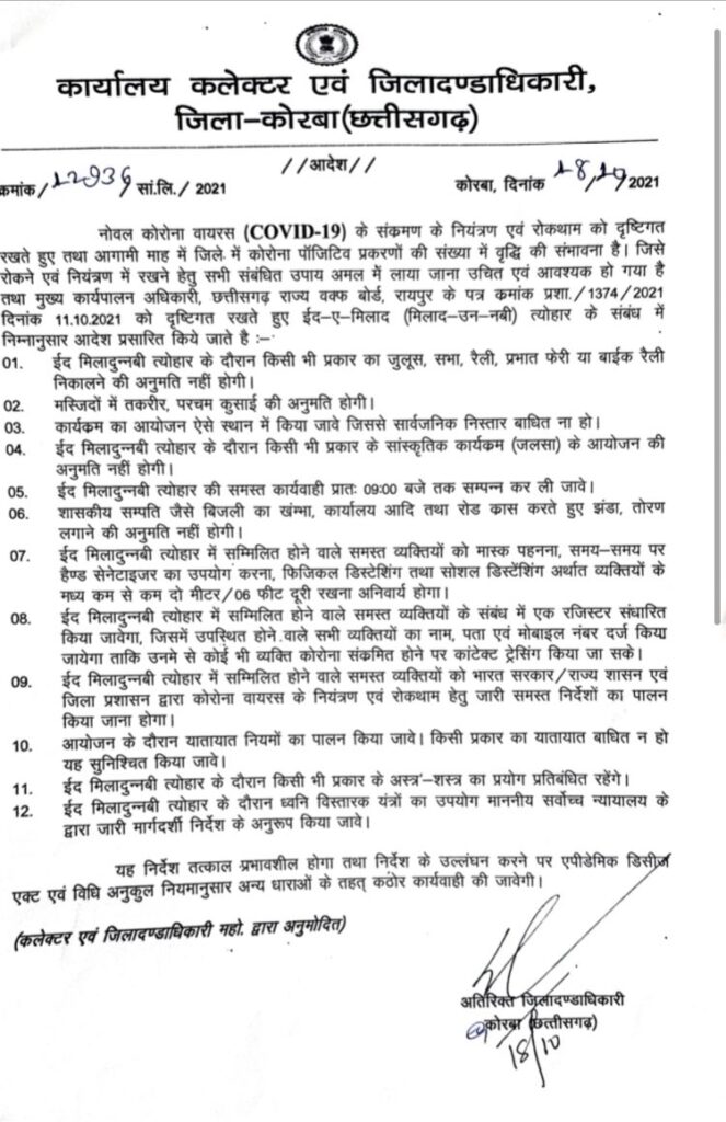 समाचार Updated: October 18, 2021 *कोरबा में भी ईद पर नहीं निकलेगा किसी प्रकार का जुलूस, कलेक्टर ने जारी किए आदेश* By admin October 18, 2021 148 Share FacebookXPinterestWhatsAppTelegram Must Read कोरबाadmin - March 13, 2026“जय जवान नहीं बन सके, तो बन गए जय किसान” रिटायर्ड फौजी के बेटे ने पसीने से सींची धरती कोरबाadmin - March 13, 2026प्रधानमंत्री आवास योजना के हितग्राहियों की समस्याओं के समाधान हेतु पूर्व मंत्री जयसिंह अग्रवाल ने कलेक्टर को लिखा पत्र कोरबाadmin - March 13, 2026*वेदांता स्किल स्कूल बदल रहा है महिलाओं के साथ देश का भविष्य* adminhttps://namastekorba.com नमस्ते कोरबाब्रेकिंग:ईद पर नहीं निकलेगा जुलूस, बाइक रैली, प्रभात फेरी की भी मनाही*कलेक्टर ने जारी किए निर्देश, कोरोना संक्रमण को ध्यान में रखते हुए सावधानी पूर्वक सामाजिक सौहार्द और भाईचारे से ईद मनाने की अपील Share this: Share on WhatsApp (Opens in new window) WhatsApp Share on Telegram (Opens in new window) Telegram Share FacebookXPinterestWhatsAppTelegram Previous article*छत्तीसगढ़ फेरबदल की अटकलें तेज , हाईकमान ने CM भूपेश बघेल को पद छोड़ने का भेजा अंतिम अल्टीमेटम*Next articleबड़ी खबर- फिर दिल्ली के लिए रवाना हुए स्वास्थ्य मंत्री टीएस सिंहदेव, अंबिकापुर से खास विमान से भरी उड़ान, दो दिनों में यह दूसरा दौरा - Advertisement - सब्सक्राइब करें नमस्ते कोरबा न्यूज़ YOUTUBE चैनल 5,580SubscribersSubscribe - Advertisement - Latest News कोरबाadmin - March 13, 2026“जय जवान नहीं बन सके, तो बन गए जय किसान” रिटायर्ड फौजी के बेटे ने पसीने से सींची धरती“जय जवान नहीं बन सके, तो बन गए जय किसान” रिटायर्ड फौजी के बेटे ने पसीने से सींची धरती नमस्ते... कोरबा प्रधानमंत्री आवास योजना के हितग्राहियों की समस्याओं के समाधान हेतु पूर्व मंत्री जयसिंह अग्रवाल ने कलेक्टर को लिखा पत्र admin - March 13, 2026 कोरबा *वेदांता स्किल स्कूल बदल रहा है महिलाओं के साथ देश का भविष्य* admin - March 13, 2026 कोरबा पंडित रविशंकर शुक्ला नगर में घर का ताला तोड़कर चोरी,जेवरात और नगदी ले उड़े चोर admin - March 13, 2026 कोरबा *कोयला मजदूर सभा(एच एम एस)कुसमुंडा में शामिल हुए बी.एम. एस. एटक एवं इंटक के सदस्य* admin - March 13, 2026 More Articles Like This “जय जवान नहीं बन सके, तो बन गए जय किसान” रिटायर्ड फौजी के बेटे ने पसीने से सींची धरती कोरबा admin - March 13, 2026 प्रधानमंत्री आवास योजना के हितग्राहियों की समस्याओं के समाधान हेतु पूर्व मंत्री जयसिंह अग्रवाल ने कलेक्टर को लिखा पत्र कोरबा admin - March 13, 2026 पंडित रविशंकर शुक्ला नगर में घर का ताला तोड़कर चोरी,जेवरात और नगदी ले उड़े चोर कोरबा admin - March 13, 2026 विश्व किडनी दिवस पर एनकेएच में जागरूकता कार्यक्रम, डायलिसिस मरीजों को दी गई जरूरी सलाह कोरबा admin - March 13, 2026 - Advertisement -