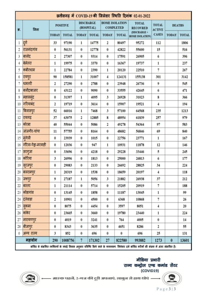 नमस्ते कोरबाछत्तीसगढ़ में कोरोना संक्रमण के ग्राफ में बढ़ोतरी हो रही है। अब तक 10 लाख से ज्यादा लोग संक्रमित हो चुके हैं। आज 290 नए मरीज मिलने की पुष्टि हुई है। अब छत्तीसगढ़ में कुल एक्टिव मरीज 1273 हो गए हैं।