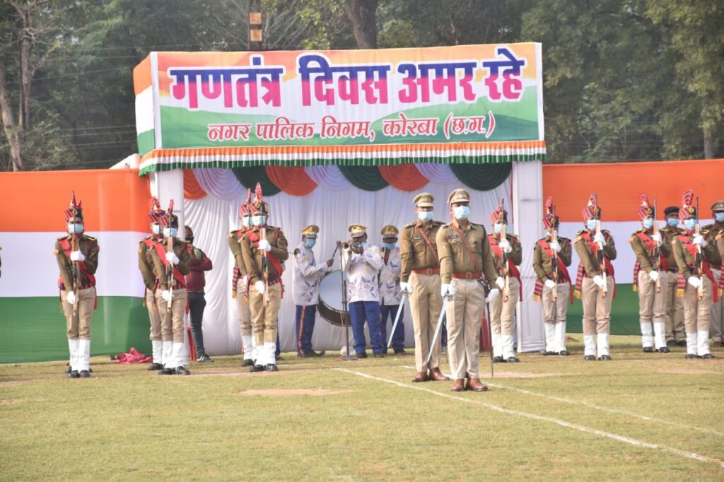 कोरबा 24 जनवरी 2022/कोरोना महामारी के कारण कोरोना संक्रमण से बचाव के लिए इस वर्ष गणतंत्र दिवस कोविड प्रोटोकॉल का पालन करते हुए विशेष सावधानियों के साथ मनाया जाएगा। आज कार्यक्रम का अंतिम रिहर्सल सीएसईबी ग्राउंड पर सुबह नौ बजे से प्रारंभ हुआ। अपर कलेक्टर श्री सुनील नायक ने इस अंतिम रिहर्सल में ध्वजारोहण किया और सशस्त्र बलों द्वारा सलामी भी ली। अपर कलेक्टर और जिला पंचायत सी.ई.ओ. श्री नूतन कंवर ने गणतंत्र दिवस समारोह से जुड़ी तैयारियों का भी इस दौरान जायजा लिया। उन्होने कार्यक्रम के दौरान बैठक व्यवस्था सहित सम्पूर्ण आयोजन में सोशल डिस्टेंसिंग का विशेष ध्यान रखते हुए सभी तैयारियां और व्यवस्थाएं करने के निर्देश दिए। अंतिम रिहर्सल में पुलिस अधीक्षक श्री भोजराम पटेल, नगर निगम आयुक्त श्री प्रभाकर पांडेय, एसडीम कोरबा श्री हरिशंकर पैंकरा सहित सभी विभागों के जिला स्तरीय अधिकारी व कर्मचारी भी मौजूद रहे।मुख्य कार्यक्रम में प्रभारी मंत्री डॉ. टेकाम करेंगे ध्वजारोहण, कोरोना वारियर्स को किया जाएगा सम्मानित-
