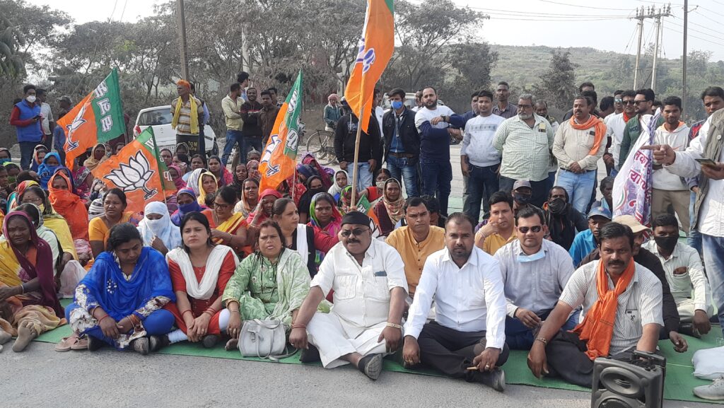 नमस्ते कोरबा :-: भारतीय जनता पार्टी के कोसाबाड़ी मंडल द्वारा बाल्को प्रबंधन के खिलाफ मोर्चा खोलते हुए डेंगू नाला पुल पर चक्का जाम कर नारेबाजी की जा रही है, चक्का जाम को देखते हुए भारी संख्या में पुलिस बल तैनात है पुलिस द्वारा समझाइए देने का भी असर चक्का जाम करने वालों पर नहीं पड़ा एवं वे अपने स्थल पर डटे रहे,