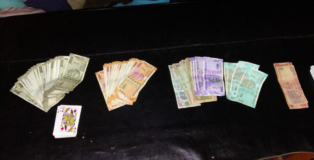 पुलिस ने घेर कर जुआ खेल रहे 1.जिलाजीत पिता बब्बू कुर्मी निवासी भट्टा टोला गौरेला, 2.केशव साहू पिता तेजाराम साहू बिलासपुर तिलक नगर,3.वंश गोपाल पिता धनीराम राठौर निवासी धनगंवा जैतहरी,4.मुकेश कुमार पनिका पिता गणेश प्रसाद निवासी वेंकटनगर,5.साबिर अली पिता जलील अली गुरुकुल,6.मनोज कुमार यादव पिता स्वर्गीय गणेश प्रसाद यादव गिरवर,7.वंश लाल चक्रधारी पिता लल्लू चक्रधारी गोरखपुर,8.प्रकाश साहू पिता दुलार साहू बचरवार,9.दिनेश गुप्ता पिता कल्लू गुप्ता जैतहरी,10.नंदू राठौर पिता केशव राठौर निवासी गिरवर,11.मोहम्मद जुबेर पिता स्वर्गीय मोहम्मद यूनुस सरस्वती नगर गौरेला,12.विक्रम राठौर पिता गेंद राम राठौर निवासी गिरवर सहित 12 जुआरी पकड़ लिए। जिनके पास से 35 हजार 050 रुपए व 12 मोटरसाइकिल भी जब्त किए गए हैं। जुआ एक्ट में जुआरियों के खिलाफ कार्रवाई की गई है।