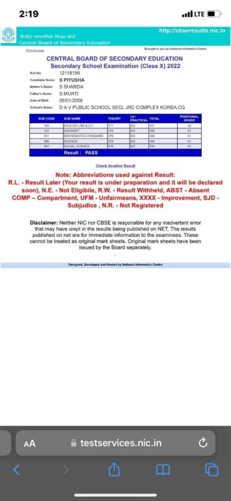 डीएवी एसईसीएल कोरबा में एस.पियूषा ने कक्षा दसवीं में किया टॉप