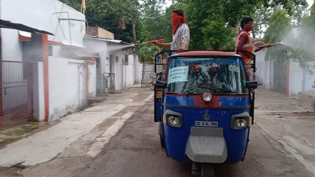 नगर निगम एवं लायंस क्लब कोरबा के संयुक्त तत्वाधान में कराया गया वार्ड क्रमांक 22 शिवाजी नगर के विभिन्न कालोनियों में सैनिटाइजिंग का कार्य