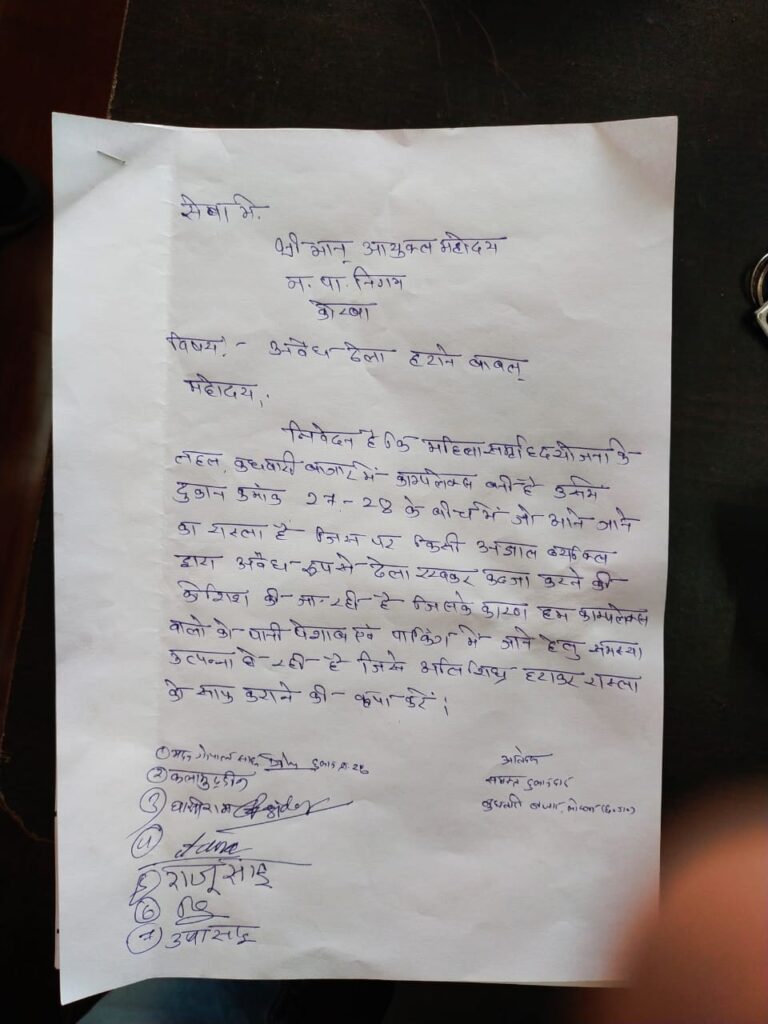 नमस्ते कोरबा :: नगर निगम और पुलिस विभाग द्वारा अतिक्रमण हटाने के लिए एक विशेष अभियान के तहत कार्य किया जा रहा है,जिससे कि शहर की सुंदरता बनी रहे और यातायात भी प्रभावित ना हो लेकिन अतिक्रमण हटाने में नगर निगम के अधिकारी गंभीर नजर नहीं आ रहे हैं. आपको बताते चलें बुधवारी बाजार स्थित नगर निगम कांपलेक्स पर दुकान क्रमांक 27 और 28 के बीच में किसी व्यक्ति द्वारा लॉकडाउन के मध्य एक ठैला लाकर रख दिया गया था.जिसकी शिकायत कांपलेक्स दुकानदारों द्वारा नगर निगम में की गई थी लेकिन उस पर कार्यवाही नहीं हुई उक्त व्यक्ति की हिम्मत इतनी बढ़ गई की वर्तमान में वहां पर उस ठेले को पक्का का बना कर स्थाई रूप से स्थापित करने की कोशिश की जा रही है, दुकानदारों ने दबी जुबान पर बताया कि पुलिस विभाग में कार्यरत किसी व्यक्ति के द्वारा यह कृत्य किया जा रहा है इसलिए नगर निगम के अधिकारी इस पर ध्यान नहीं दे रहे अगर नियम बन रहा है तो सभी के लिए एक समान होना चाहिए,गौरतलब है कि बुधवारी बाजार में भीड़ होने की वजह से नगर निगम के द्वारा कॉन्प्लेक्स के पीछे पार्किंग की व्यवस्था दोपहिया और चार पहिया वाहनों के लिए की गई है,जिस में जाने के लिए आमजन इस रास्ते का प्रयोग कर रहे थे जिस पर अवैध कब्जा होने से गाड़ी पार्किंग करने वाले फिर से सड़क पर ही अपनी गाड़ी पर पार्किंग करने लगे हैं,