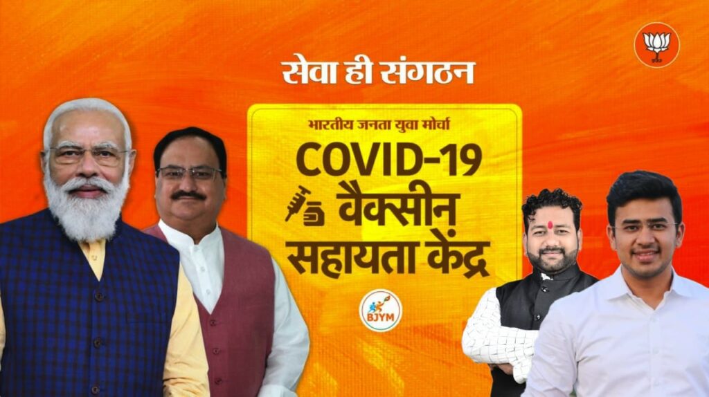 नमस्ते कोरबा::भारतीय जनता पार्टी राष्ट्रीय आह्वान सेवा ही संगठन को आदर्श वाक्य मानकर भारतीय जनता युवा मोर्चा संपूर्ण छत्तीसगढ़ प्रदेश के वैक्सीनेशन सेंटर्स में कोविड-19 वैक्सीन सहायता केंद्र लगा रही है ।