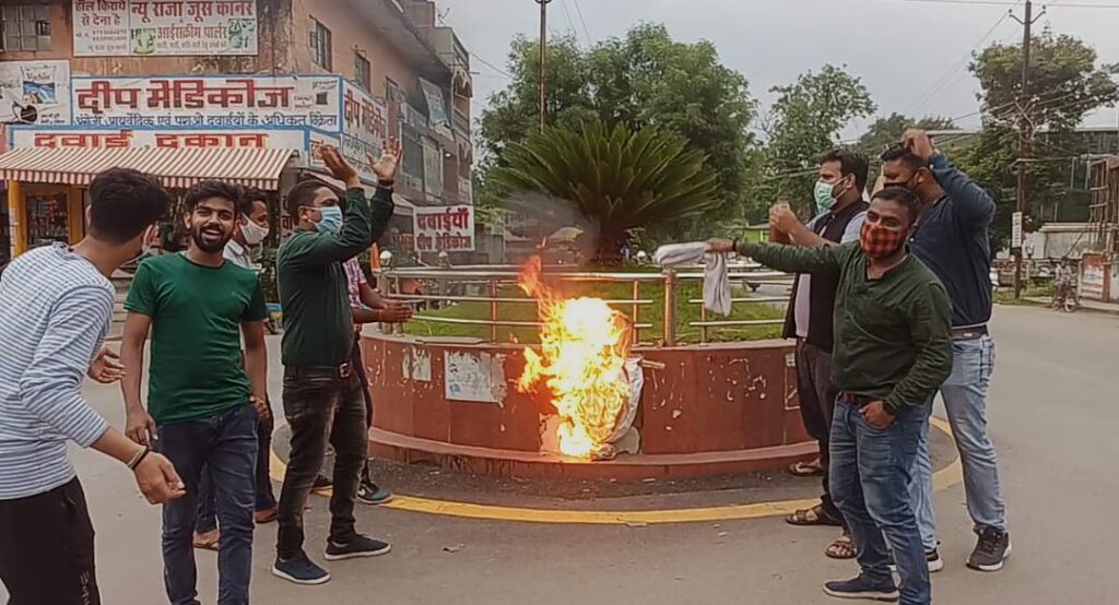 आज छात्र एकता पैनल द्वारा कोसाबाड़ी चौक में भाजयुमो प्रदेशाध्यक्ष अमित साहू का पुतला दहन किया गया, छात्र एकता पेनल के अनुसासन समिति अध्यक्ष सागर ढोके ने कहा कि कहा कि आज पूरे प्रदेश और कोरबा की जनता के सामने भाजपा का असली चेहरा उजगार हो रहा है, महिला सम्मान की बात करने वाली भाजपा आज एक दहेज प्रताड़ना के आरोपी को संरक्षण देने का काम कर रही है, एक बेटी का आंसू आज इनको दिखाई नही दे रहा है, एक युवक की तकलीफ इनको दिखाई नही दे रही है जो व्यक्ति ऐसे कृत्य कर रहा है उसको जिला उपाध्यक्ष की उपाधि देना सरासर गलत है, निंदनीय है हम इसकी भर्त्सना करते है, जहां एक ओर भाजपा के राष्ट्रीय एवं प्रदेश के नेता महिलाओं की अस्मिता सुरक्षा स्वाभिमान और सशक्तिकरण की बात करते है वहीं दूसरी ओर कोरबा भाजपा के लोग ऐसे व्यक्ति को पद दे रहे है, जिसके उपर महिला प्रताड़ना का अपराध दर्ज है, ये कृत्य भाजपा कोरबा के चाल चरित्र और चेहरे को उजागर करता है, ऐसे व्यक्ति को तत्काल पद से हटाते हुए पीड़ित युवती और युवक की मदद करने की जगह भाजपा के नेता दिव्यांश अग्निहोत्री को बचाने में लगे हुए है जो कि अत्यंत दुखदायी एवं शर्मनाक है, पूरे प्रदेश में भाजपा लगातार महिला सम्मान और सशक्तिकरण को लेकर आंदोलन कर रही है किंतु उसी भाजपा के युवा मोर्चा द्वारा दहेज प्रताड़ना के आरोपी को पद दिया गया है यदि भाजपा दिव्यांश अग्निहोत्री पर कार्यवाही नही करती तो आने वाले समय मे युग भाजपा जिलाध्यक्ष के घर घेराव भी करेगी और पीड़ित युवती एवं युवक को इंसाफ दिलाएगी |