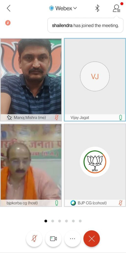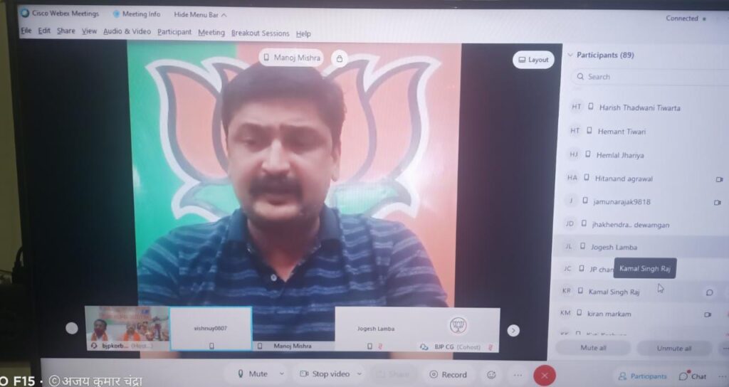 आज के इस वर्चुअल जिला कार्यसमिति बैठक में मुख्य रूप से भाजपा प्रदेश उपाध्यक्ष भाजपा श्री लखन लाल देवांगन, रायगढ़ संगठन सह प्रभारी श्री विकास महतो, श्री जोगेश लांबा, श्री ज्योतिनंद दुबे, अल्पसंख्यक मोर्चा के प्रदेश अध्यक्ष श्री आरिफ खान साथ ही जिला कोरबा में निवासरत समस्त प्रदेश पदाधिकारी एवं सदस्य, जिला के पदाधिकारी, कार्यसमिति सदस्य, विशेष आमंत्रित सदस्य, स्थाई आमंत्रित सदस्य, मंडलों के अध्यक्ष एवं महामंत्री, मंडलों के प्रभारी एवं सह प्रभारी, मोर्चा एवं प्रकोष्ठ के जिले के अध्यक्ष, महामंत्री एवं संयोजक गण उपस्थित रहे । जिला कार्यसमिति बैठक का संचालन एवं आभार प्रदर्शन जिला महामंत्री संतोष देवांगन ने किया ।