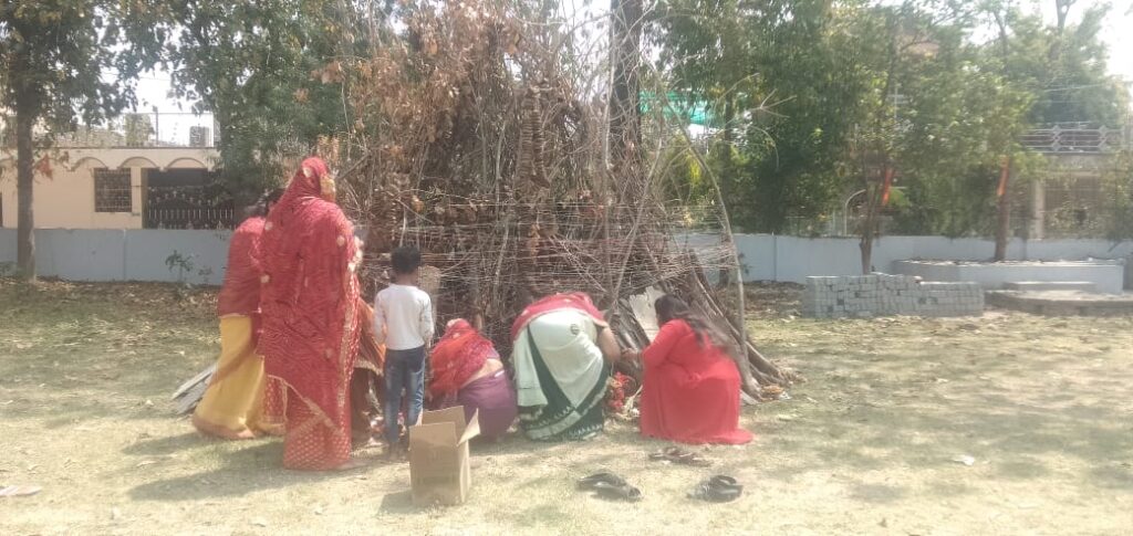 नमस्ते कोरबा :-: होलिका दहन के पूर्व मारवाड़ी समाज की महिलाएं पूरे परिवार के साथ होलिका स्थल पर पहुंचकर पूजा अर्चना करती है। गुरुवार को यह रस्म निभाई गई। पंडित रविशंकर नगर स्थित कपिलेश्वर मंदिर के प्रांगण में बने होलिका में आसपास रहने वाले मारवाड़ी परिवार के लोग एकत्र होकर पूजा अर्चना किए। हिंदू धर्म को मानने वालों में मारवाड़ी समाज होली त्योहार को अलग अंदाज में मनाने तैयार है। सुबह से लेकर दहन तक पूजन विधि में महिलाएं जुटी रहीं। सुबह से ही गोबर से बने कंडे, माला, रोली, कुमकुम, फूल व चावल से होलिका पूजन होता रहा। शाम को जिला प्रशासन द्वारा निर्धारित समयानुसार होली समिति द्वारा होलिका दहन किया जाएगा। अगले दिन शुक्रवार को रंगोत्सव मनाने हर कोई तैयार है।