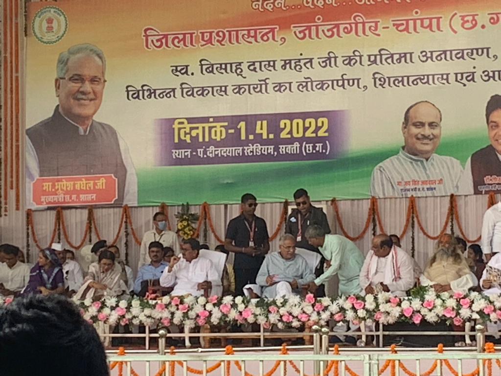 कोरबा:- स्वर्गीय बिसाहूदास महंत के 98वीं जयंती अवसर पर मुख्यमंत्री भूपेश बघेल ने सक्ती में स्व. बिसाहूदास महंत के प्रतिमा का अनावरण किया। इस मौके पर विधानसभा अध्यक्ष डॉ. चरणदास महंत, जांजगीर जिले के प्रभारी मंत्री जयसिंह अग्रवाल, कोरबा सांसद ज्योत्सना महंत, कोरबा महापौर राजकिशोर प्रसाद, कोरबा कांग्रेस अध्यक्ष सुरेन्द्र प्रताप जायसवाल ने भी मंच साझा किया। इस मौके पर महापौर राजकिशोर प्रसाद ने मुख्यमंत्री भूपेश बघेल से मुलाकात कर नगरीय निकाय एवं पंचायत प्रतिनिधियों के मानदेय तथा विकास निधि में बढ़ोत्तरी किये जाने के लिए धन्यवाद देते हुए आभार व्यक्त किया। राजकिशोर प्रसाद ने मुख्यमंत्री को कोरबा आने का न्यौता देते हुए कहा हम कोरबा जिले के जनप्रतिनिधिगण कोरबा में आपका आभार व्यक्त करना चाहते हैं। इस पर मुख्यमंत्री जी ने यथासंभव कोरबा प्रवास के लिए आश्वासन दिया है।