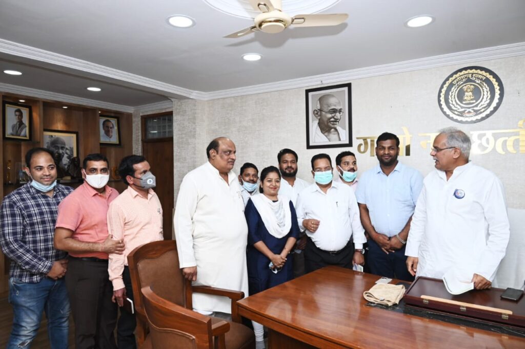 जयसिंह अग्रवाल मंत्री राजस्व एवं आपदा प्रबंधन विभाग की सकारात्मक पहल व उपस्थिति में छत्तीसगढ़ कनिष्ठ प्रशासनिक सेवा संघ के प्रांताध्यक्ष कृष्ण कुमार लहरे के नेतृत्व में आज संघ का एक प्रतिनिधिमंडल मुख्यमंत्री भूपेश बघेल से उनके निवास कार्यालय रायपुर में सौजन्य मुलाकात कर उन्हें आम जनता के हितों के मद्देनजर राजस्व प्रशासन की बेहतरी के लिए तहसीलदारों की मांग सहित विभिन्न मूलभूत समस्याओं से भी अवगत कराया गया। मुख्यमंत्री द्वारा जून के अंतिम सप्ताह में तहसीलदार, नायब तहसीलदारों के प्रांतीय महाधिवेशन में शामिल होने के आमंत्रण को सहर्ष स्वीकार कर सहमति दी गई। विदित हो कि विगत दिनों राजस्व मामलों के त्वरित निराकरण में आने वाले दिक्कतों सहित पुराने लंबित मांगों से अवगत कराने हेतु प्रदेश के सभी जिलों से तहसीलदारों ने अपनी 10 सूत्रीय मांगों के संबंध में मुख्यमंत्री के नाम ज्ञापन जिला कलेक्टरों के माध्यम सौपा है। जिस पर मुख्यमंत्री ने त्वरित संज्ञान लेते हुए निराकरण हेतु संघ के सदस्यों को आश्वासन दिया है। संघ की ओर से प्रतिनिधिमंडल में प्रांताध्यक्ष कृष्ण कुमार लहरे सहित कार्यकारी प्रांताध्यक्ष संध्या नामदेव एवं मनीष देव साहू, पंचराम सलामे, गोविंद सिन्हा, प्रकाशचंद्र साहू, लखेश्वर किरण, प्रमोद पटेल, चंद्रशेखर मंडई, रविशंकर राठौर, सोनू अग्रवाल, सत्येंद्र शुक्ला आदि रहे।