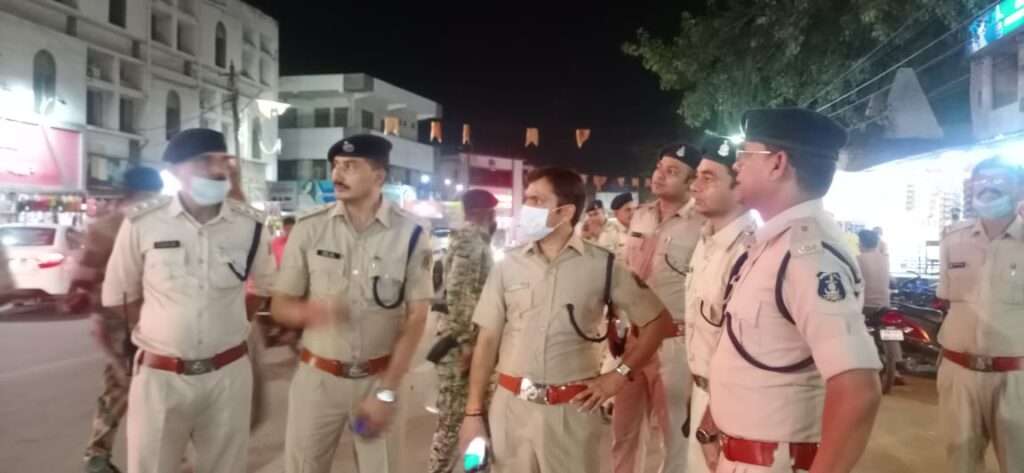 श्री पटेल पुलिस टीम के साथ टी पी नगर चौक से होते हुए सोनालिया, पावर हाउस रोड, कोतवाली सीतला मंदिर, हनुमान मंदिर, पुराना बस स्टैंड आदि जगहों का भ्रमण करते हुए पुराना बस स्टैंड में समापन किये,