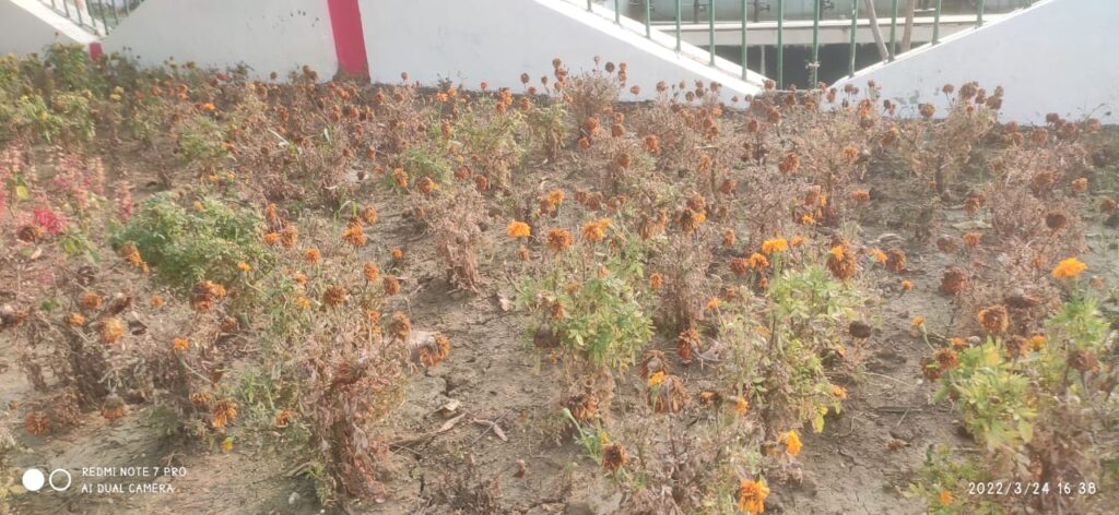नमस्ते कोरबा :-: नगर निगम कोरबा हर साल शहर की सुंदरता बढ़ाने के लिए अनेकों उपाय करता है एवं लाखों करोड़ों रुपए सौंदर्यकरण के नाम पर खर्च किए जाते हैं, लेकिन नगर निगम में कार्यरत कर्मचारियों की लापरवाही किस कदर हावी है इसका उदाहरण आप नगर निगम के साकेत भवन के सामने देख सकते हैं निगम द्वारा कुछ दिन पूर्व यहां पर बगीचा बनाया गया था जिस पर विभिन्न प्रकार के फूलों को लगाकर साकेत की सुंदरता बढ़ाई गई थी परंतु यह बगीचा लापरवाही की भेंट चढ़ गया यहां कार्यरत लोगों को फूलों में पानी डालने की भी फुर्सत नहीं है और जिले में पड़ रही गर्मी की वजह से पूरे पेड़ और फूल मुरझा गए हैं, जो की सुंदरता बढ़ाने की बजाए बदरंग लग रहे हैं, जिन लापरवाह अधिकारियों के कारण ऐसी स्थिति निर्मित हुई है उन पर कार्यवाही अवश्य होनी चाहिए जिससे कि नगर निगम के द्वारा जा रहे कार्यों की सफलता सुनिश्चित हो सके और प्रशासन के पैसों का भी सदुपयोग हो,