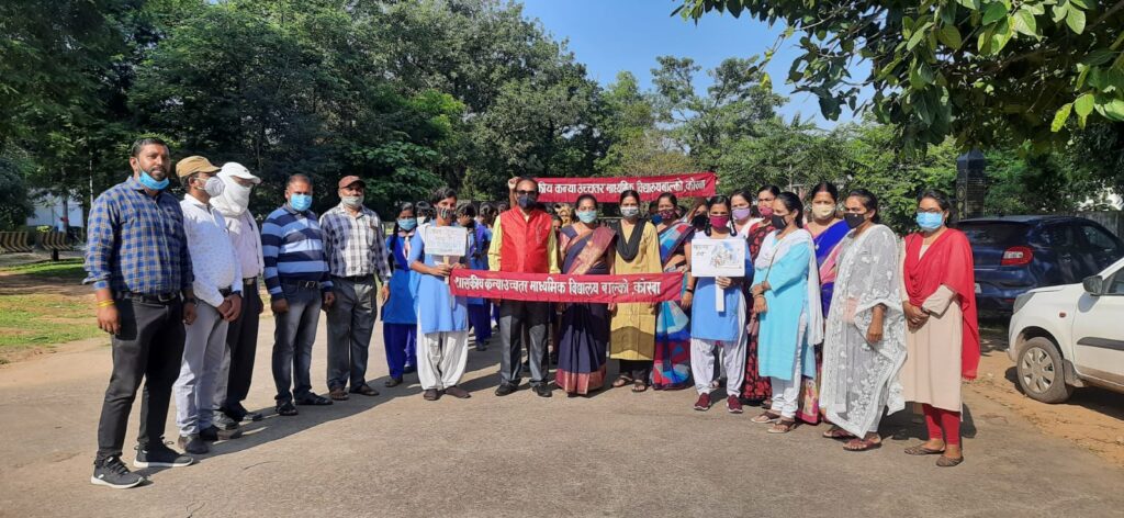 नमस्ते कोरबा :-: दिनांक 2/10/21 को शासकीय कन्या उच्चतर माध्यमिक विद्यालय में राष्ट्रपिता महात्मा गांधी एवं लाल बहादुर शास्त्री जी की जयंती के अवसर पर सर्वधर्म प्रार्थना सभा आयोजित की गई। जिसके अंतर्गत विद्यालय के सभी शिक्षक/ शिक्षिकाओं कर्मचारियों एवं छात्राओं के द्वारा कोविड प्रोटोकॉल का पालन करते हुए सद्भावना रैली निकाली गई। इसके पश्चात विद्यालय में प्राचार्य महोदया डॉ श्रीमती निरुपमा तिवारी एवं प्रधान पाठक श्री राजेश राय के द्वारा गांधी जी और लाल बहादुर शास्त्री जी के चित्र के सम्मुख दीप प्रज्वलित कर पुष्प माला एवं पुष्प अर्पित की गई। विद्यालय के अन्य सभी शिक्षक/ शिक्षिकाओं,छात्राओं एवं स्काउट गाइड की छात्राओं के द्वारा पुष्प अर्पित की गई।तत्पश्चात उद्बोधन स्वरूप विद्यालय के प्राचार्य महोदया एवं प्रधान पाठक जी के द्वारा दोनों महापुरुषों के जीवन के कुछ खास प्रेरणादायक पहलुओं को बताया गया। कार्यक्रम के इसी कड़ी में विद्यालय में वृक्षारोपण, स्वच्छता पर निबंध,नारा एवं चित्रकला का आयोजन किया गया।