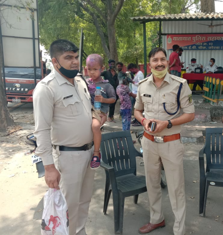 नमस्ते कोरबा ::दिनांक 29 मार्च 2021 को होली पर्व के मद्देनजर सांप्रदायिक सौहार्द्र एवं लाइन आर्डर ड्यूटी के दौरान नगर पुलिस अधीक्षक कोरबा श्री योगेश साहू कोरबा टाउन में लगातार कानून व्यवस्था एवं टाउन भ्रमण पर थे इस दौरान टीपी नगर कोरबा में एक 4-5 साल का बालक लावारिस हालत में घूमते फिरते मिला था। उक्त बालक परिजनों से बिछड़ने के कारण काफी परेशान था। बालक को चौकी सीएसईबी लाकर घरेलू माहौल में पूछताछ करने पर अपना नाम पीयूष पाठक तथा रहने वाला अटल आवास का बताया।