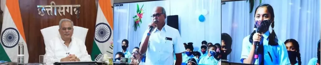 नमस्ते कोरबा :-: मुख्यमंत्री भूपेश बघेल ने आज यहाँ अपने निवास कार्यालय से वर्चुअल माध्यम से दुर्ग जिले के पाटन विधानसभा क्षेत्र के 07 स्वामी आत्मानंद उत्कृष्ट अंग्रेजी माध्यम विद्यालय के लगभग 7 करोड़ 25 लाख के विकास कार्यों का भूमिपूजन और लोकार्पण किया। इस दौरान उन्होंने विद्यालय के विद्यार्थियों, शिक्षकों और अभिभावकों से चर्चा भी की । इस अवसर पर छत्तीसगढ़ खादी एवँ ग्रामोद्योग बोर्ड के सदस्य हेमन्त देवांगन और क्षेत्रीय जनप्रतिनिधिगण कार्यक्रम स्थल में उपस्थित थे । अपर मुख्य सचिव सुब्रत साहू मुख्यमंत्री निवास में उपस्थित थे ।