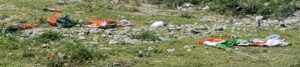 लेकिन मतदान के दिन पोलिंग बूथ से कुछ दूर बनाए गए टेंट में मतदान केेेेे दिन भाजपा और कांग्रेस के प्रत्याशियों के कट आउट एवं दोनों पार्टियों का झंडा लगाया गया था. जो वर्तमान में कचरे के ढेर पर पड़ा है. जिस पर ना तो सफाई कर्मियों की नजर पड़ रही है और ना ही तथाकथित नेताओं की जो इस मार्ग से हर रोज जाना जाना कर रहे हैं.पार्टी का झंडा जो हर कार्यकर्ता का मान सम्मान होता है, पार्टी के कार्यकर्ताओं को इसका सम्मान बनाए रखना चाहिए. मतदान की समाप्ति के पश्चात सम्मान पूर्वक टेंट से इन्हेंं उतारकर यथा उचित स्थान पर रखना चाहिए था.
