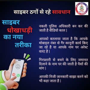 कोरबा पुलिस अधीक्षक सिद्धार्थ तिवारी ने सजग कोरबा अभियान के तहत नगर वासियों से यह अपील करते हैं कि किसी भी प्रकार के अंजान कॉल को ध्यान ना दे और अपनी जानकारी उनसे साझा ना करें। डिजिटल ठग अक्सर पीड़ित से यह कहते हैं कि आपने मोबाइल पर कुछ आपत्तिजनक कंटेंट खोलकर देखा है या आपने जो पार्सल भेजा था उसमें मादक पदार्थ पाये गये है जिससे उन्हें डिजिटल गिरफ्तारी के तहत बंदी रखा गया है पीड़ित पर मुकदमा न करने के लिए पैसों की मांग की जाती है व्हाट्सएप पर नकली पुलिस अधिकारी की डीपी लगाकर पीड़ित को वास्तविक पुलिस होने का भरोसा दिलाते हैं वीडियो कॉल पर बतलाया जाता है कि आपके मोबाइल नंबर से गैर कानूनी कार्य किये जा रहे हैं या आपका नाम पर अरेस्ट वारंट है गिरफ्तारी से बचने के लिए जमानत दिलाने के नाम पर पैसे का मांग की जाती है। ठग अक्सर पुलिस वर्दी पहन कर डराते हैं उसके सामने पुलिस बोर्ड भी होगा, ताकि आप समझे कि पुलिस ही बात कर रहा है लोगों को डरने की बात नहीं है। पुलिस ऐसा कभी नहीं करती। सतर्क रहे, सजग रहे।