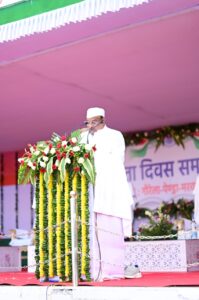 समारोह के मुख्य अतिथि मंत्री  जयसिंह अग्रवाल ने मुख्यमंत्री के संदेश में कहा कि हमारी न्याय योजनाएं प्यार की गंगा बहा रही है और दिलों को जोड़ रही है। उन्होने मुख्यमंत्री के संदेश के माध्यम से धान खरीदी प्रति एकड़ 15 क्विंटल से 20 क्विंटल करने, किसानों को 20 हजार करोड़ की इनपुट सब्सिडी, समर्थन मूल्य पर पहली बार मिलेट की खरीदी, किसानों के लिए बढ़ती सुविधाएं, सिंचाई सुविधाओं का विस्तार, गौठानों से गांव में आ रहा आर्थिक स्वावलंबन, तीन सौ नए रीपा प्रारंभ करने, फूड पार्क के लिए भूमि का चयन, भूमिहीन कृषि मजदूरों को 590 करोड़ रूपए की मदद, 32 लाख से अधिक महिलाओं को रोजगार, ‘आवास न्याय योजना’ प्रारंभ करने, पंजीकृत श्रमिकों को मिल रही विभिन्न सुविधाएं, देश में सर्वाधिक लघु वनोपज का संग्रहण, अनुसूचित क्षेत्रों में तेजी से विकसित होती अधोसंरचनाएं, खाद्य सुरक्षा के साथ पोषण सुरक्षा को भी मिली गति, सुपोषण अभियान के तहत पौने तीन लाख बच्चे कुपोषण और दो लाख महिलाएं एनीमिया से मुक्त करने की जानकारी दी।