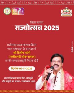 Read more :- कोरबा में 2 से 4 नवंबर तक होगा भव्य राज्योत्सव,उद्योग मंत्री लखनलाल देवांगन होंगे मुख्य अतिथि, दिलीप षड़ंगी व अलका चंद्राकर देंगी प्रस्तुति