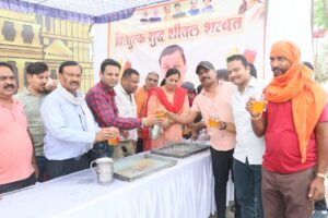 उद्योग मंत्री लखन लाल देवांगन ने घंटाघर चौक पर निशुल्क शरबत वितरण का किया शुभारंभ