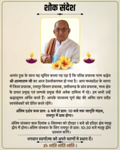 नमस्ते कोरबा : श्री हरिहर क्षेत्र केदार द्वीप मदकू के पुरातात्विक और आध्यात्मिक वैभव को पुनः प्रतिष्ठित करने के लिए अपना संपूर्ण जीवन समर्पित करने वाले समाजसेवी एवं संघ के वरिष्ठ प्रचारक श्री शांताराम जी का 94 वर्ष की आयु में रायपुर में निधन हो गया।