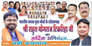 नमस्ते कोरबा : भारतीय जनता युवा मोर्चा के प्रदेश अध्यक्ष राहुल टिकरिहा का बहुप्रतीक्षित प्रथम कोरबा जिला प्रवास 10 नवम्बर को प्रस्तावित है। उनके आगमन के ऐलान के साथ ही पूरे कोरबा जिले में उत्साह, जोश और एकता की नई लहर दौड़ पड़ी है। युवा मोर्चा के कार्यकर्ताओं से लेकर वरिष्ठ भाजपा नेताओं तक, हर कोई इस प्रवास को लेकर खासा उत्साहित है। जगह-जगह स्वागत तोरणद्वार, फूलों की सजावट और भव्य बाइक रैलियों की तैयारियों ने जिले का माहौल राजनीतिक उत्सव में बदल दिया है।