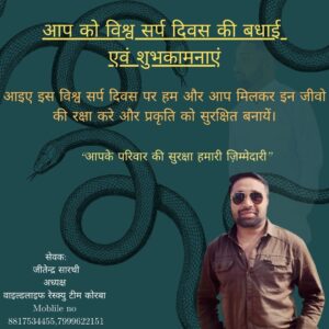 विश्व सर्प दिवस में जिले के लोगों ने कार्यक्रम में लिया भाग,कोरबा जिला दुर्लभ सरीसृपों का बना घर